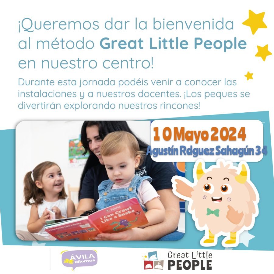 Si queréis conocer la metodología Great Little People, podéis asistir a la jornada de puertas abiertas que organizará Ávila Idiomas el 10 de mayo. Será a las a las 18,30. La escuela está en la avenida de Agustín Rodríguez Sahagún, 34.