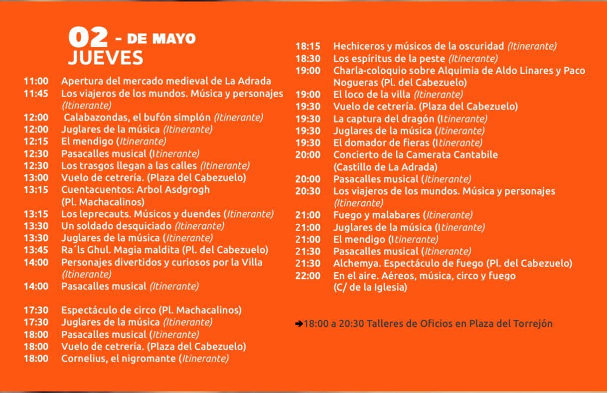 PROGRAMA COMPLETO DEL MERCADO MEDIEVAL DE LA ADRADA 2024