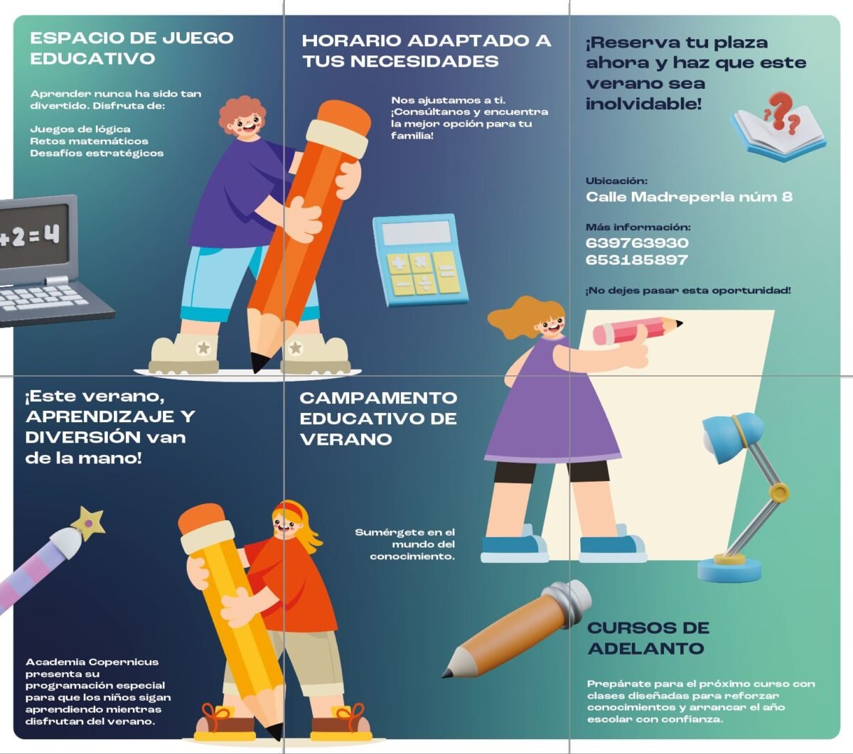 ¡Por cierto! Este verano, la Academia Copernicus lanza un campamento educativo pensado para que los niños sigan aprendiendo de forma divertida. A través de juegos de lógica, retos matemáticos, desafíos estratégicos y actividades diseñadas para estimular el pensamiento, los más pequeños podrán reforzar conocimientos sin dejar de disfrutar.