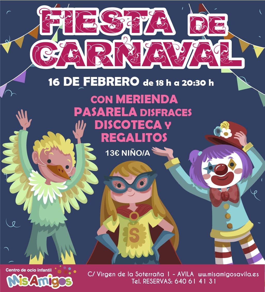 Será el lunes 16 de febrero de 18,00 a 20,30 horas. Ese día, los niños podrán disfrutar a lo grande en una súper fiesta que incluye discoteca, merienda, regalos y un gran desfile de carnaval.