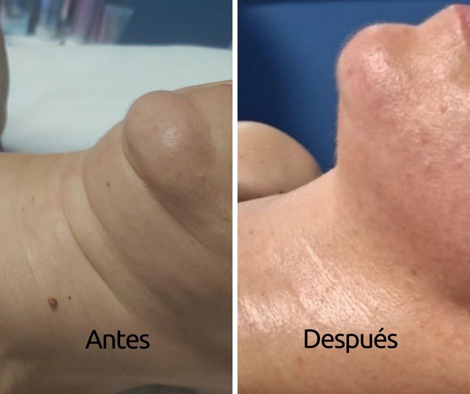 En esta primera imagen, se observa cómo se reduce la ‘papada’ del cuello.