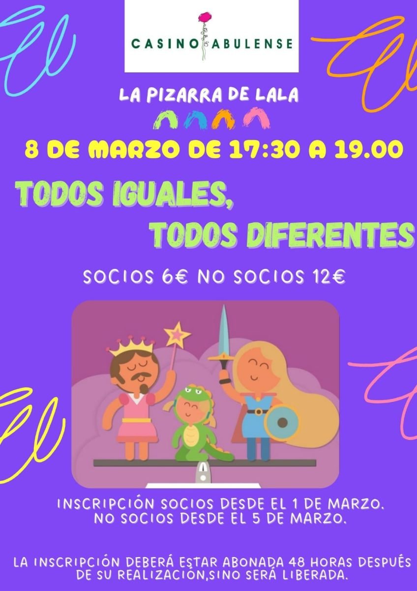 Y también el viernes tenemos el primer cuentacuentos del finde: será en el Casino Abulense y estará guiado por la genial Laura, de La Pizarra de Lala. Lleva por nombre ‘Todos iguales, todos diferentes’.