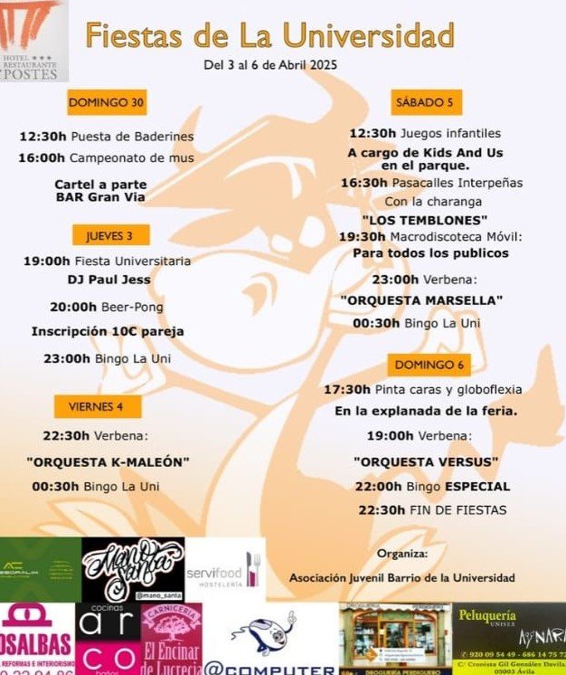 No nos olvidamos de que el primer finde de abril en Ávila comienzan las fiestas de los barrios. Concretamente, el del Barrio Universidad.