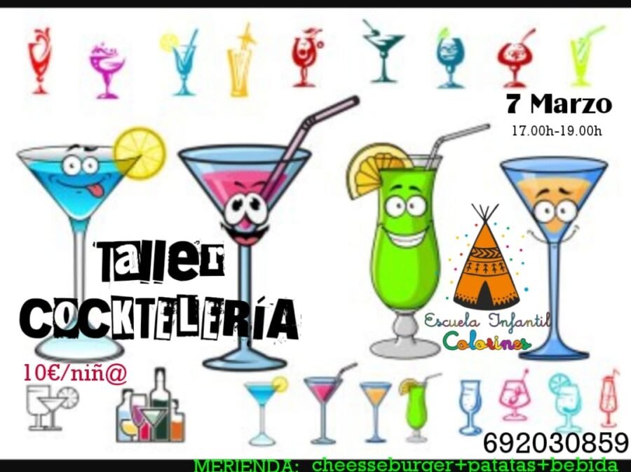 También el viernes, los niños tienen la opción de acudir al taller de cocktelería de Colorines. Serán cócteles de frutas, zumos y azúcar de colores, que nadie se asuste. Tienen muy buena pinta.