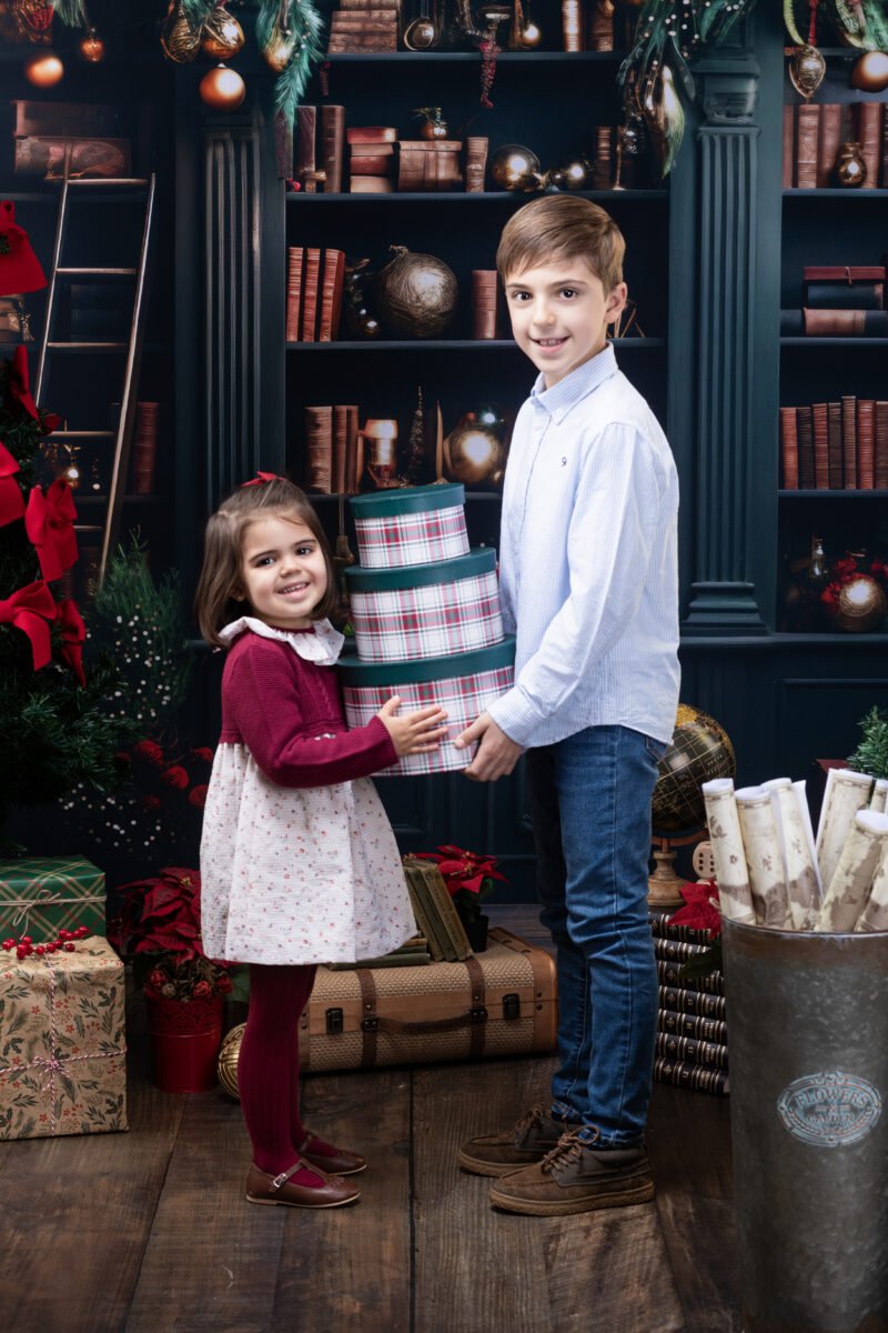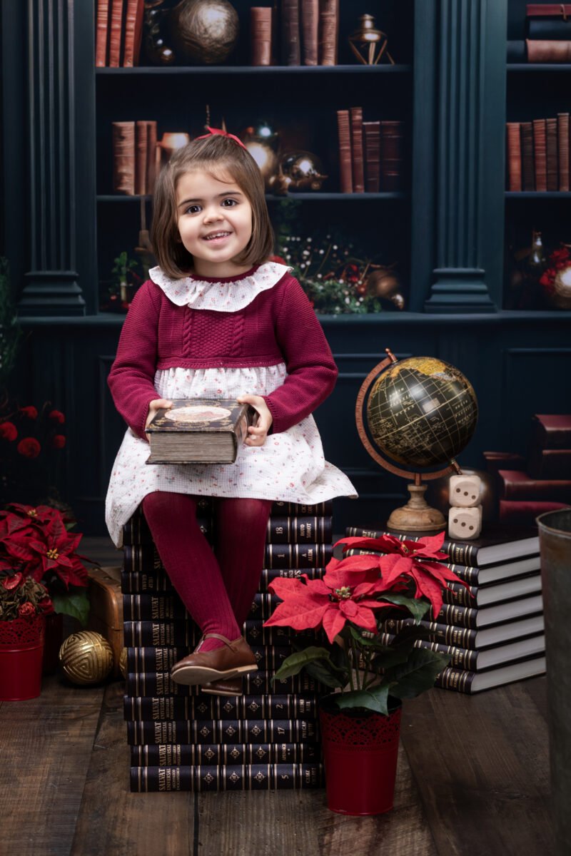 Este año, para sus sesiones navideñas han recreado una auténtica y antigua librería: un escenario precioso en el que obtienen fotos únicas que podrán ser, además, la mejor felicitación navideña posible.