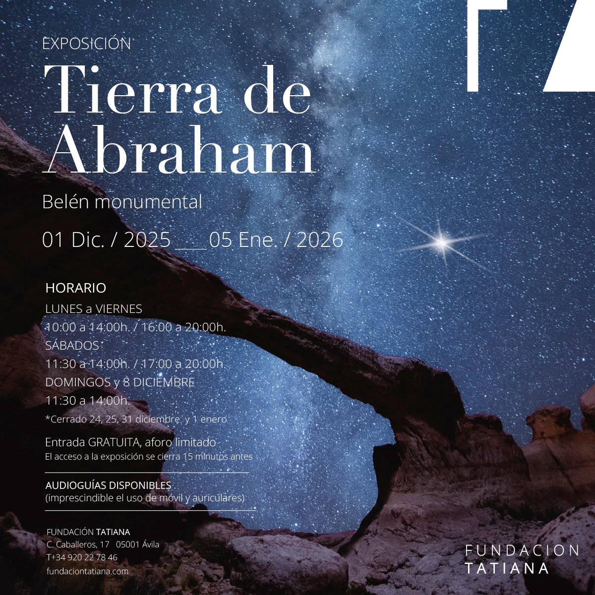 La exposición ofrece de forma gratuita una audioguía para seguir el recorrido que nos adentra en la figura de Abraham como patriarca de la Fe. Ésta nos conduce por los caminos de encuentro y a los episodios del Evangelio correspondientes al nacimiento de Jesús, y que está culminado por algunos símbolos, materiales y talleres artesanos de las piezas expuestas.