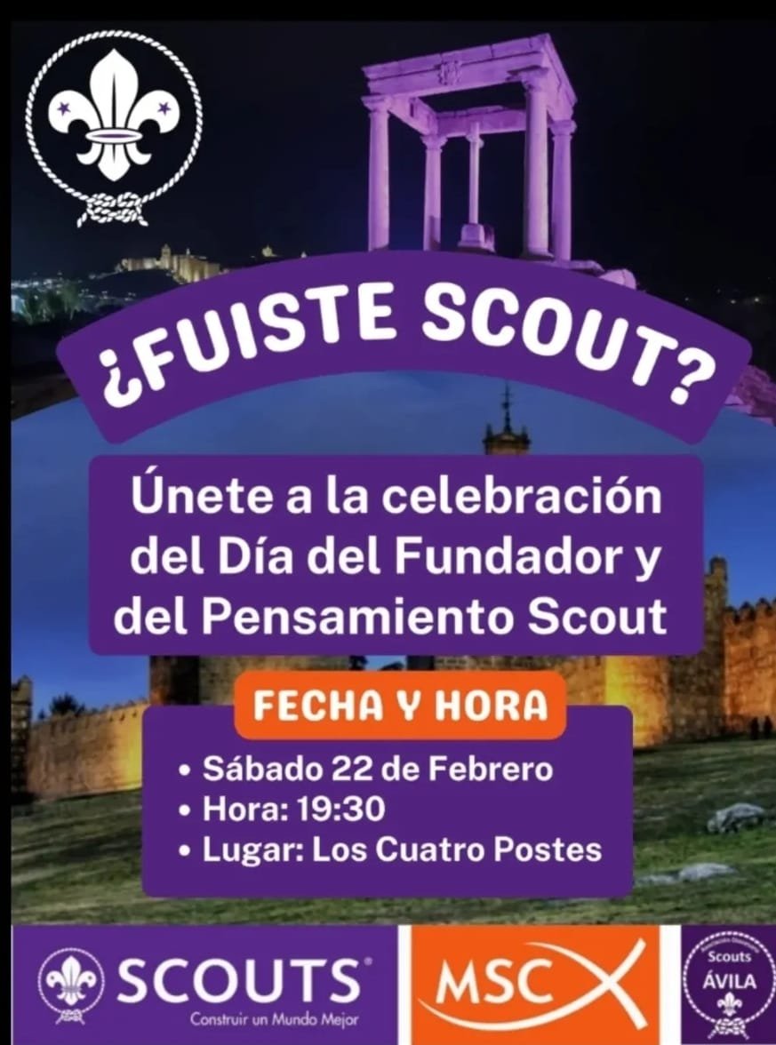 Y a última hora de la tarde, podéis acercaros a los Cuatro Postes a participar en la celebración del Día de Pensamiento Scout, que organizan los grupos abulenses. Habrá juegos y mucho espíritu scout en un atardecer en el que el monumento de Ávila se ilumimará de morado.